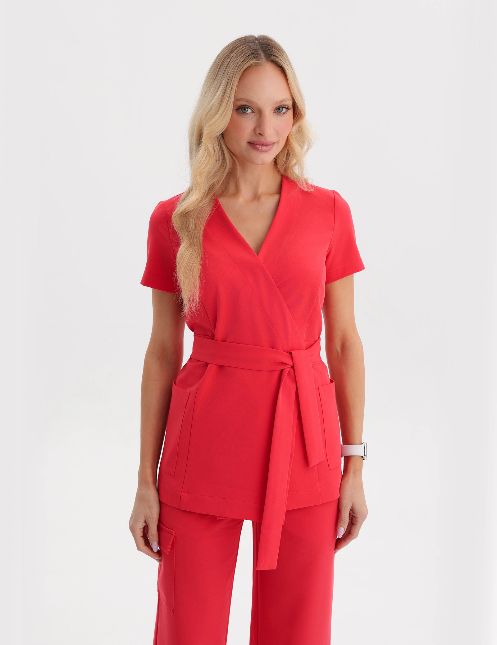 Ultrajemná a ženská mikina AURI je vyrobená z vysoko kvalitnej tkaniny Basic v odtieni Pop Red. Francúzske strihové línie na prsiach a zoštíhlenie v páse dodávajú mikine ženský, elegantný vzhľad. Viaže sa v páse – uzol je možné uviazať vpredu alebo vzadu.